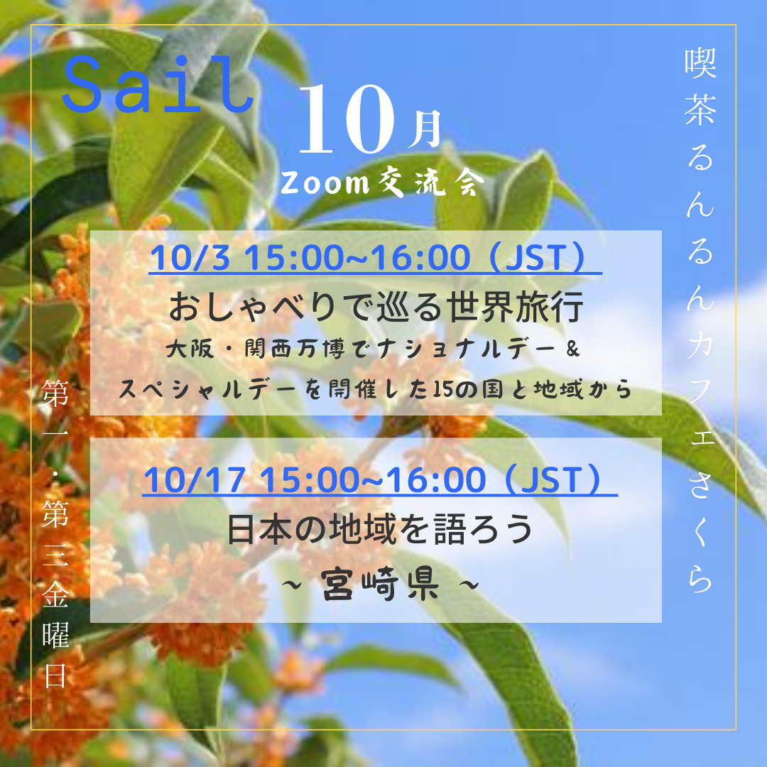 2025年10月のオンライン交流会「喫茶るんるん/カフェさくら」のお知らせです。下のURLをクリックして参加できます。