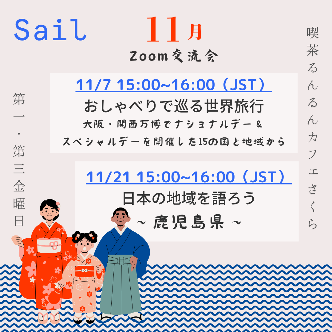 2025年11月のオンライン交流会「喫茶るんるん/カフェさくら」のお知らせです。下のURLをクリックして参加できます。