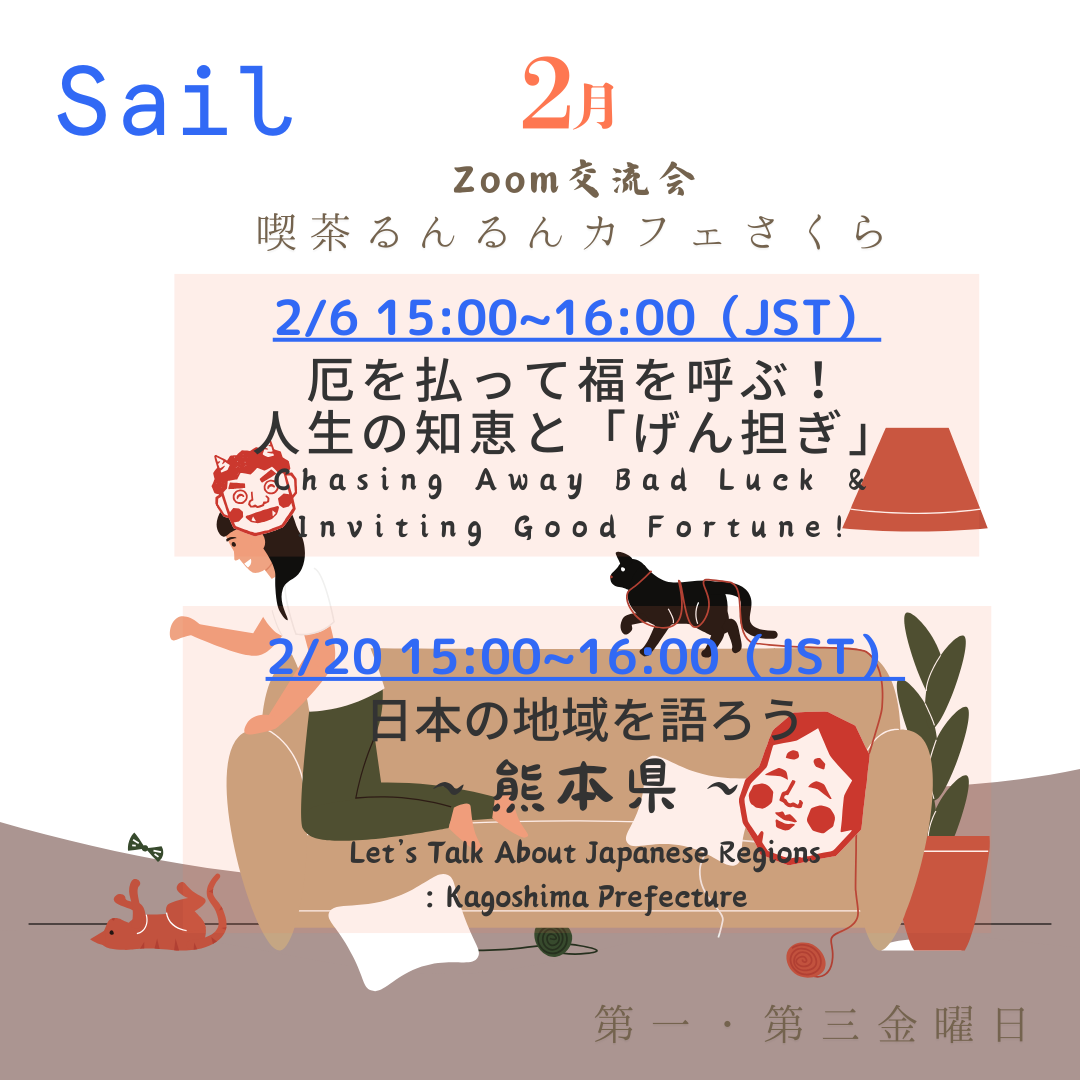 2026年2月のオンライン交流会「喫茶るんるん/カフェさくら」のお知らせです。下のURLをクリックして参加できます。