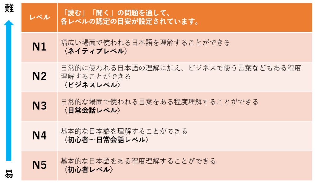 (過去配信分のメールマガジンより、一部抜粋した内容となっております) こんにちは! Sailスタッフの三浦です。 今日は、みなさまのご質問の中から、「日本語能力試験(JLPT)とは?」をご紹介します! - 日本語レベルを表す指標のひとつ、「JLPT」って? - 日本語の理解度をはかるテストとして、「日本語能力試験」というものがあります。 JLPT(ジェーエルピーティー)とも呼ばれ、日本語を母語としない人を対象に、世界共通で実施されているテストです。 テストでは主に「読む」「聞く」の問題が出題されます。