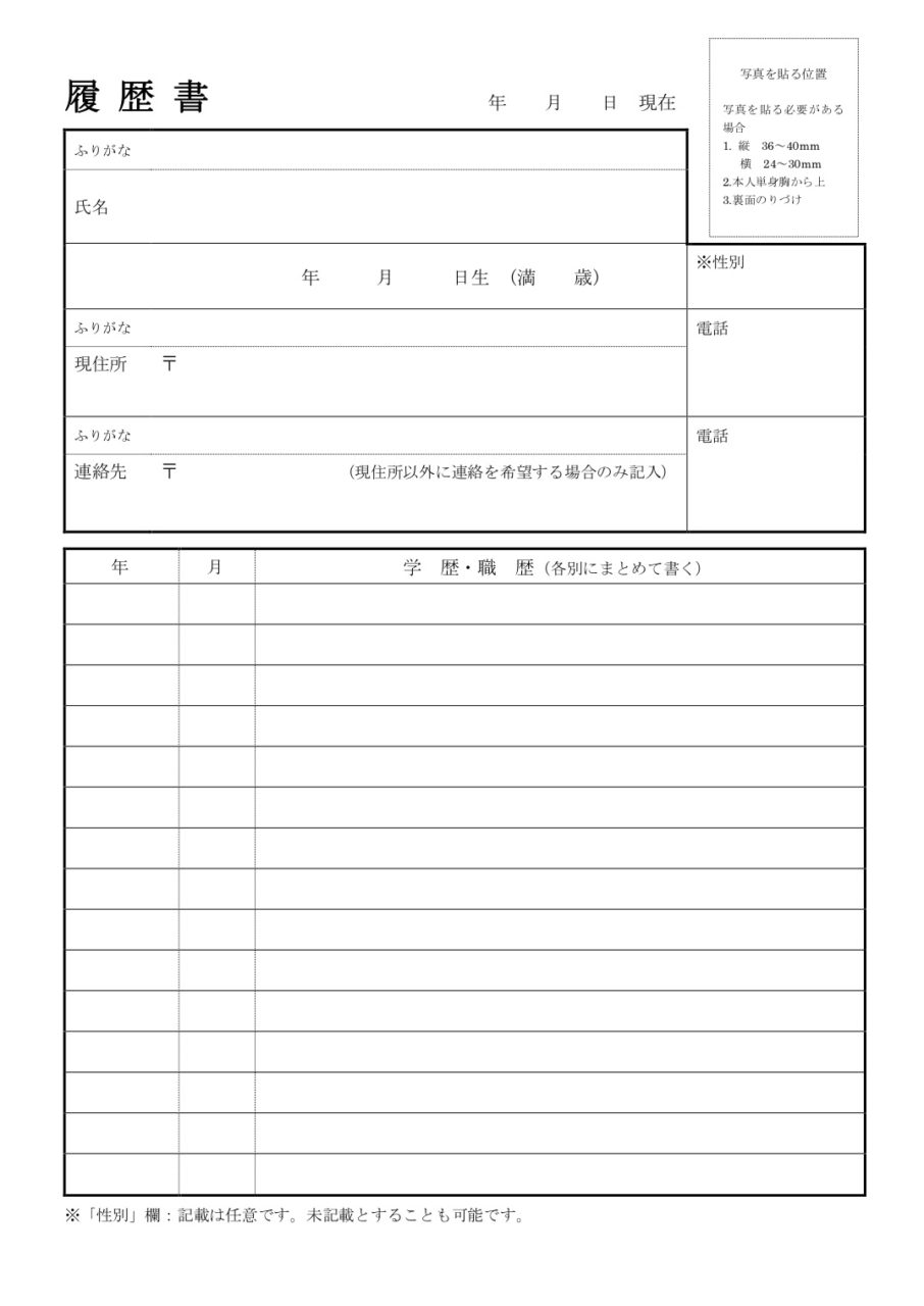 ▼まず、こちらの画像が、日本で使用される一般的な「履歴書」です。