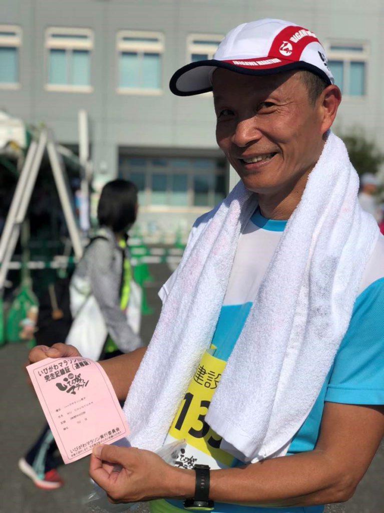 大都市への出張が多いので、たまには田舎の景色を見ながら走ってみたくて、岐阜県揖斐川町の「いびがわマラソン」に参加したこともありますよ=写真。日本のマラソン大会は家族で参加したり、みんなで楽しみながら走るところが素晴らしいですね。