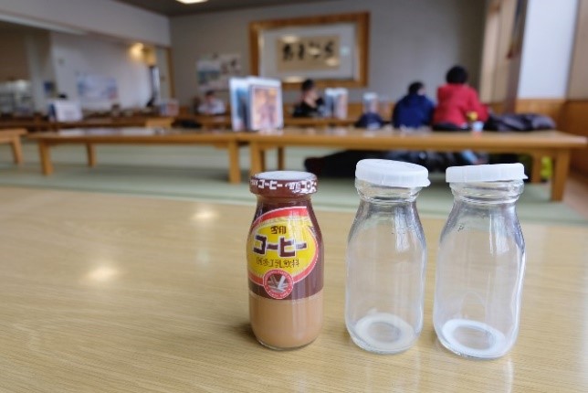 雪の中、温泉に入って、日本のアニメで見たお風呂上がりの牛乳を飲んでみました。おいしくて3本も飲んでしまいました。