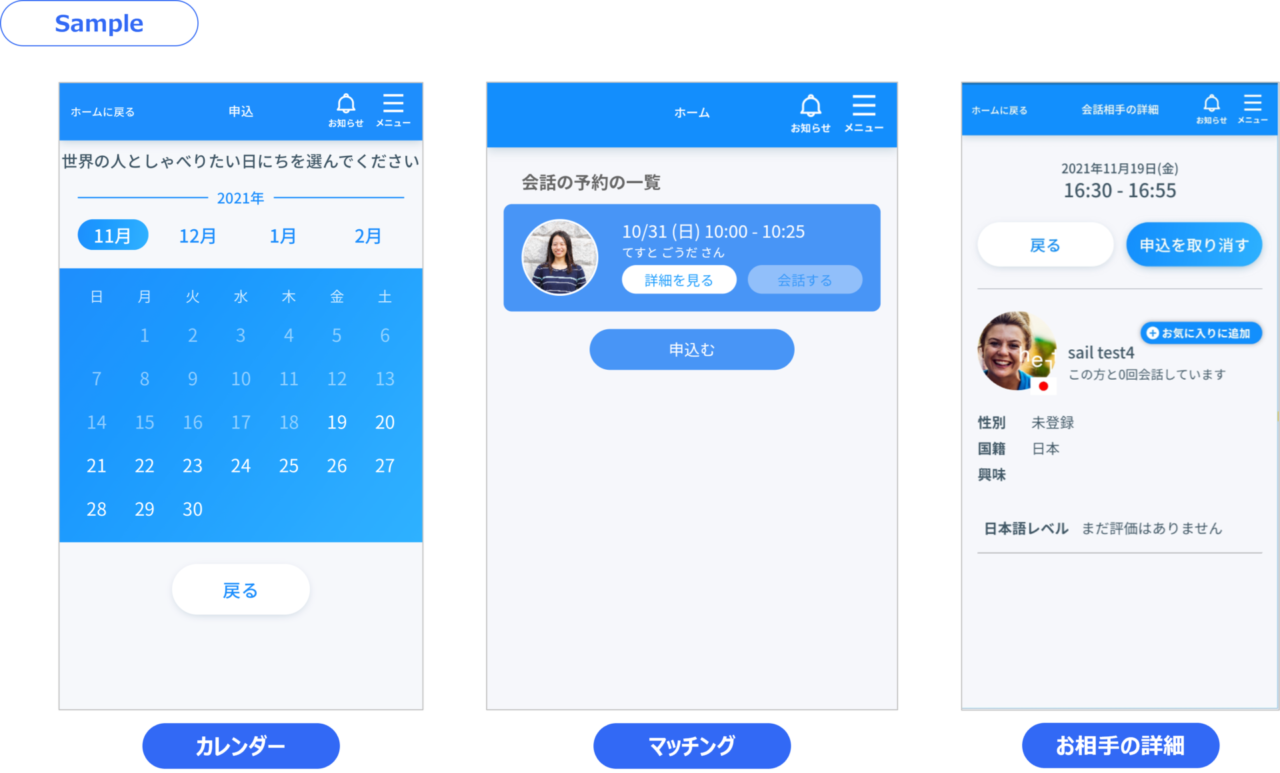 “ひと”との交流を求める方や、自身の経験や知識、日本の文化を伝えたいと考える方など、ミドルからシニア層の方が多く登録されています。「日本語」で交流が行えることから、海外の方との交流経験の無いユーザーも多く登録されており、生活の中の新たなエンタメとして楽しんでいただいています。