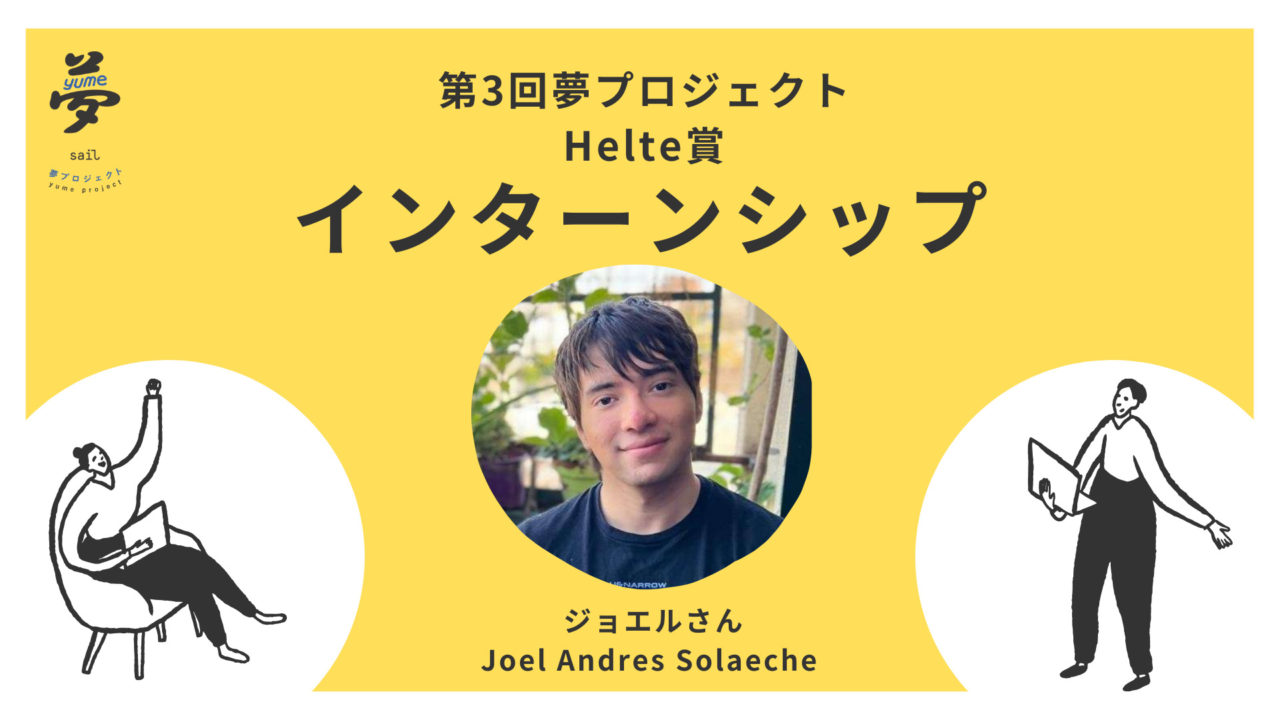 第3回夢プロジェクト・Helte賞 第3回夢プロジェクトで、Helte賞を受賞したアルゼンチン出身のジョエルさんHelteでのインターンシップが始まりました!Read more